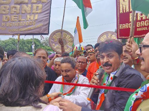 सजे-धजे बैंड, ढोल-ताशे, शहनाई और तुरही की धुनें पूरे मार्ग में देशभक्ति की लहर पैदा कर रही थीं। यात्रा चांदनी चौक की ऐतिहासिक गलियों से गुज़रती हुई आगे बढ़ी, और रास्ते में अनेक स्थानों पर स्थानीय व्यापारिक संगठनों और आरडब्ल्यूए द्वारा फूलों की वर्षा और जयघोष के साथ भव्य स्वागत किया गया।