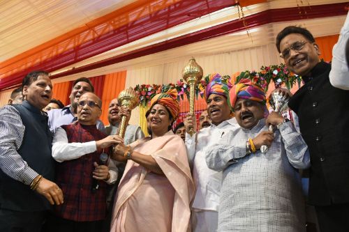 कमेटी अध्यक्ष श्री अर्जुन कुमार ने सभी अतिथियों का पटका, स्मृति-चिन्ह और शक्ति का प्रतीक गदा भेंटकर सम्मान किया।