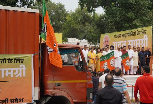 नई दिल्ली, 07 सितंबर 25 । दिल्ली की मुख्यमंत्री रेखा गुप्ता एवं दिल्ली भाजपा अध्यक्ष वीरेन्द्र सचदेवा ने प्रदेश सह प्रभारी डॉ अलका गुर्जर एवं अन्य गणमान्य नेताओं की उपस्थिती में पंजाब में बाढ़ पीड़ितों की सहायता के लिए आज दिल्ली भाजपा कार्यालय से राहत समाग्री से भरे 52 ट्रको के काफिले को झंडी दिखाकर रवाना किया।