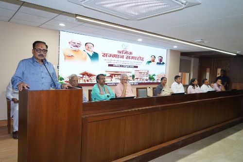 •  वीरेंद्र सचदेवा की अध्यक्षता में आयोजित श्रमिक सम्मान समारोह में राष्ट्रीय संगठन महामंत्री बी एल संतोष ने सभी श्रमिक साथियों को प्रशस्ति पत्र प्रदान कर उनका अभिवादन किया