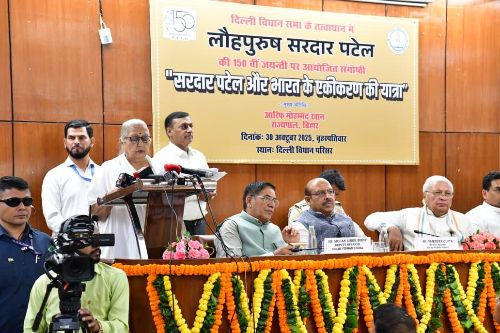 नई दिल्ली, 30 अक्तूबर 2025 । “एकता ईंट-पत्थरों से नहीं बनती, एकता भावना से उत्पन्न होती है और भावना विचार से जन्म लेती है” यह बात बिहार के राज्यपाल अरिफ मोहम्मद खान ने सरदार वल्लभभाई पटेल की 150वीं जयंती के अवसर पर दिल्ली विधानसभा में आयोजित संगोष्ठी को संबोधित करते हुए कही। इस अवसर पर दिल्ली विधानसभा के माननीय अध्यक्ष विजेंद्र गुप्ता, उपाध्यक्ष मोहन सिंह बिष्ट, दिल्ली कैबिनेट मंत्री कपिल मिश्रा तथा स्वराज आश्रम, बारडोली (गुजरात) की प्रशासक सुश्री निरंजनाबेन कालारथी की उपस्थिति में श्री वल्लभभाई पटेल की प्रतिमा पर पुष्पांजलि अर्पित की गई। इस अवसर पर विधानसभा परिसर में “सरदार पटेल और भारत के एकीकरण की यात्रा” शीर्षक पर एक विशेष प्रदर्शनी का भी उद्घाटन किया गया, जिसमें लौह पुरुष के जीवन, दृष्टि और विरासत को दर्शाने वाले दुर्लभ अभिलेखीय चित्र एवं ऐतिहासिक तस्वीरें शामिल थी। गांधी स्मृति के उपाध्यक्ष विजय गोयल, वरिष्ठ नेता सुधांशु मित्तल तथा अन्य विधायकगण भी इस अवसर पर उपस्थित थे।