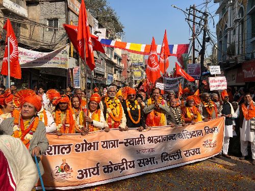 इस अवसर पर एक भव्य शोभायात्रा का आयोजन किया गया, जो प्रातः 10:00 बजे स्वामी श्रद्धानंद बलिदान भवन, नया बाजार से प्रारंभ हुई। यह यात्रा 10:45 बजे टाउन हॉल पहुँची, इसके बाद हौज काजी चौक (चावड़ी बाजार मेट्रो) से होती हुई दोपहर 1:00 बजे रामलीला मैदान में संपन्न हुई।