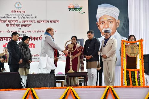 • अटल बिहारी और मदन मोहन के लिये ‘राष्ट्र प्रथम’ सबसे पहले रहा – रेखा गुप्तानई दिल्ली, 3 जनवरी 2026। “राजनीति सत्ता प्राप्ति का माध्यम नहीं, बल्कि जनसेवा का पवित्र दायित्व है। लोकतंत्र तभी स्थायी रहता है, जब वह चरित्र, नैतिकता और सत्यनिष्ठा से निर्देशित हो” यह बात केंद्रीय रक्षा मंत्री राजनाथ सिंह ने कही, जब वे दिल्ली विधानसभा में पूर्व प्रधानमंत्री एवं भारत रत्न श्री अटल बिहारी वाजपेयी और भारत रत्न महामना पंडित मदन मोहन मालवीय के चित्रों के अनावरण समारोह में उपस्थित थे। उन्होंने कहा कि दोनों नेता नैतिक ईमानदारी, लोकतांत्रिक जिम्मेदारी और राष्ट्र के प्रति प्रतिबद्धता के सर्वोच्च मानक स्थापित करते हैं, और उनका सार्वजनिक आचरण आज भी नैतिक राजनीति, उद्देश्य की एकता और दीर्घकालिक राष्ट्रीय हित को प्राथमिकता देने में मार्गदर्शक है।